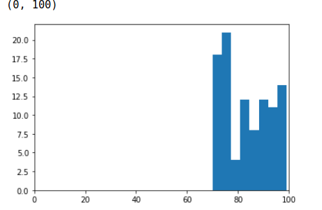 위 히스토그램 결과와 같이, 데이터가 현재 [70-100] 범위 내에 편향되어 있는 것을 볼 수 있다.